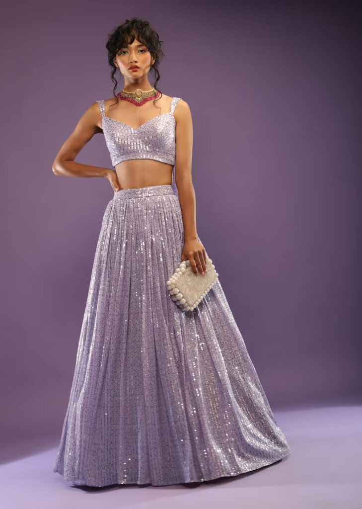 Lavender Stonework Crepe Designer Saree